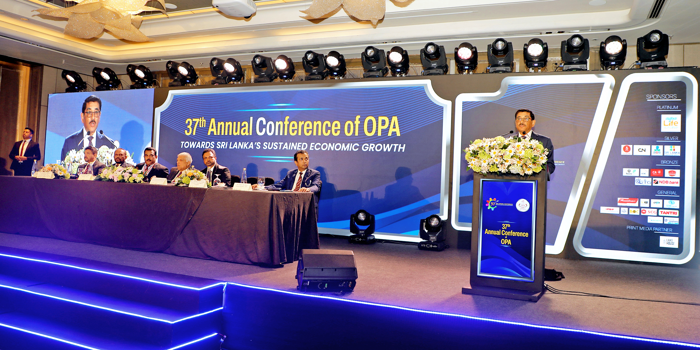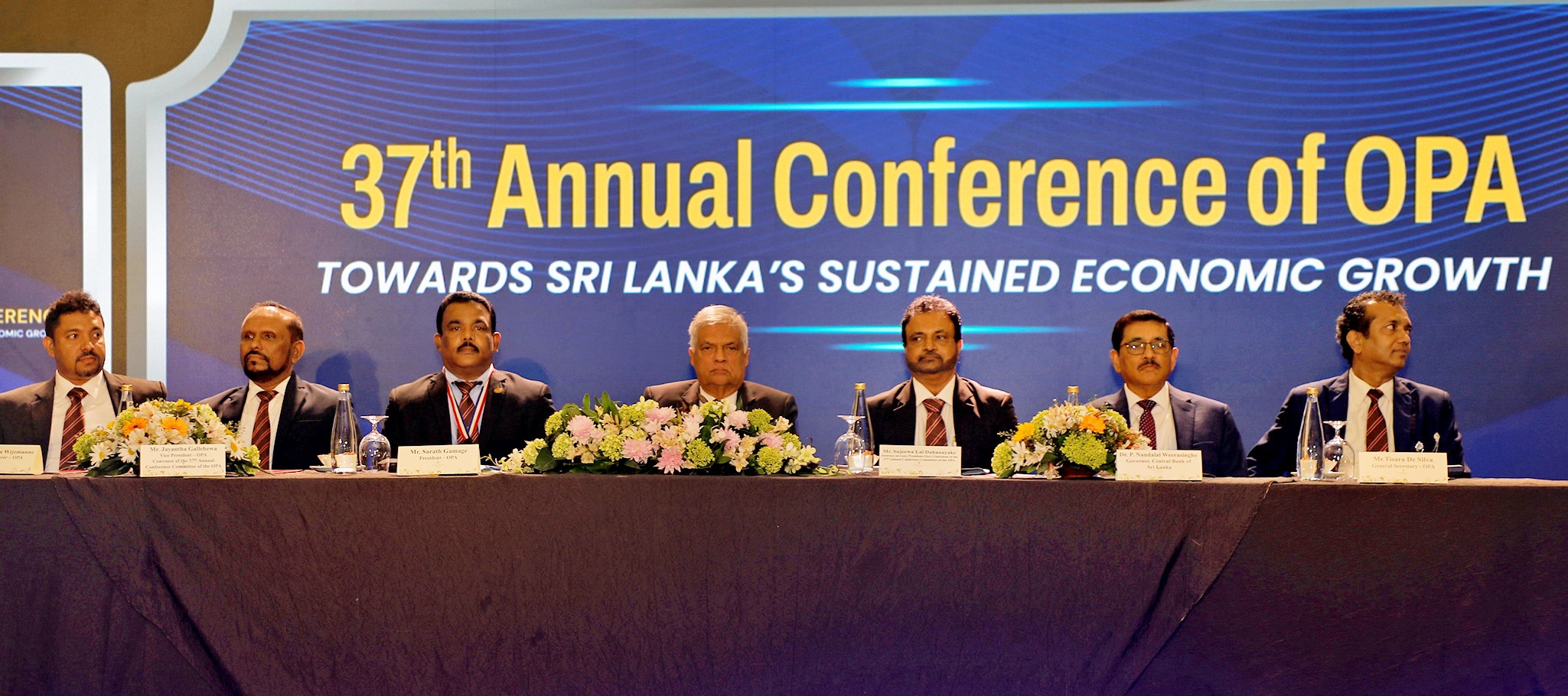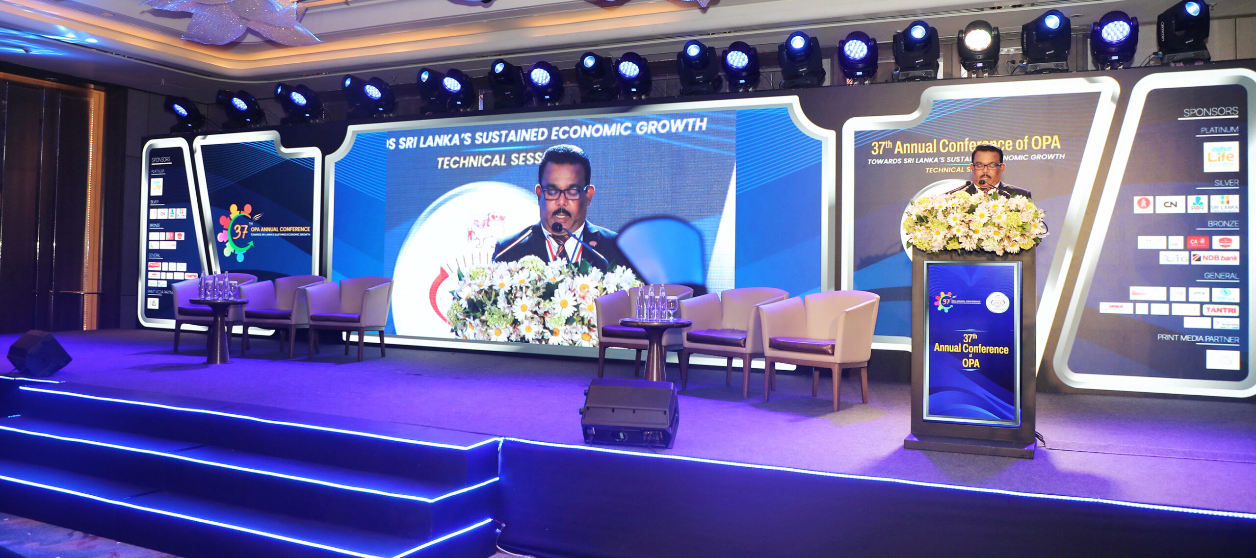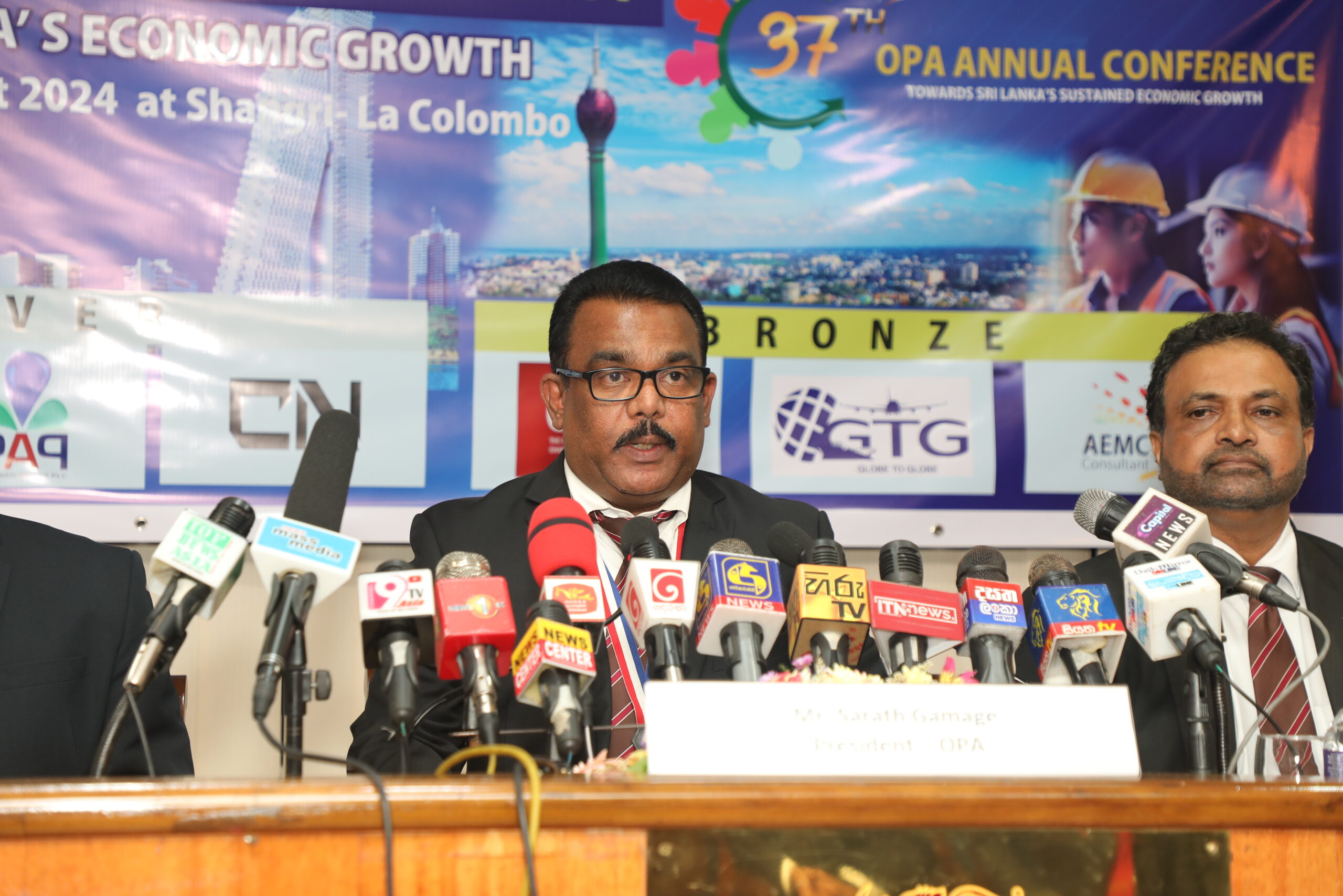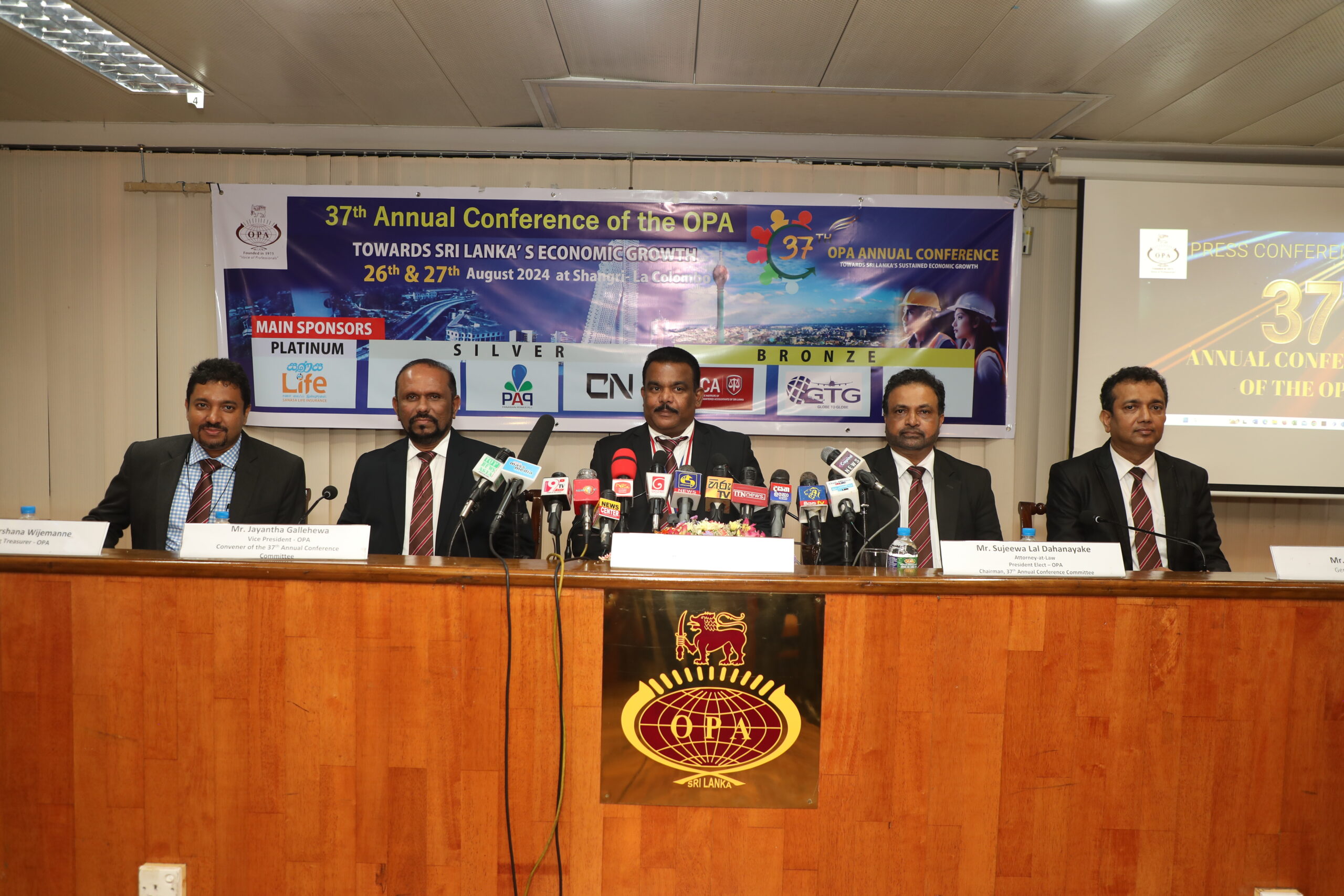 The press conference for the 37th Annual Conference of the OPA, which will be held on the 26th and 27th of August at the Shangri-La Hotel, Colombo, took place on the 17th of July at the OPA auditorium. President Sarath Gamage, President-Elect and Chairman of the Annual Conference Organising Committee, Mr. Sujeewa Lal Dahanayake, General Secretary Mr. Tisara de Silva, Vice President and Convener Mr. Jayantha Gallehewa and other key office bearers were present on the occasion to provide detailed information about the upcoming Conference, including an introduction to the theme: “Towards Sri Lanka’s Sustained Economic Growth”.