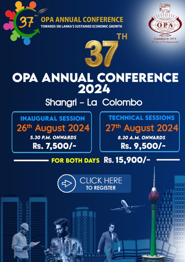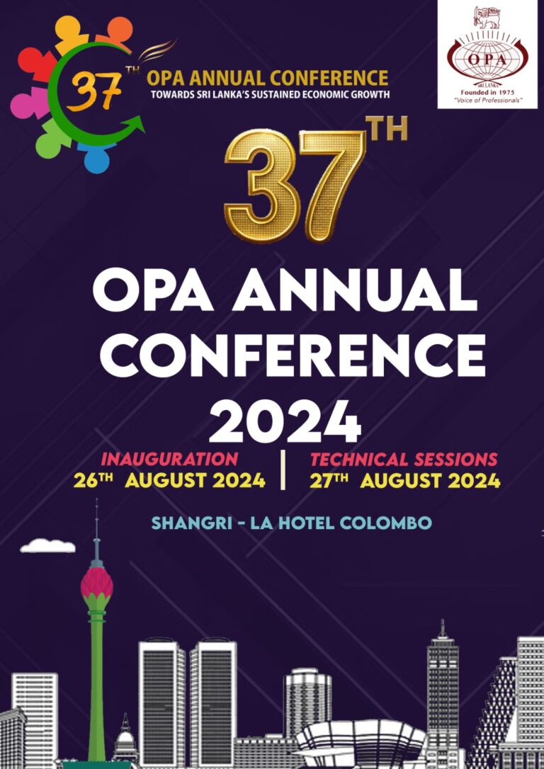 The logo of the 37th Annual Conference of the OPA symbolizes the unity and empowerment of the Sri Lankan people, representing the collective strength that drives success and triumph. It embodies the power of collaboration and shared efforts, ensuring the nation’s rise towards economic growth, stability, and prosperity. The logo reflects a deep optimism for the future, signaling a brighter tomorrow for Sri Lanka.