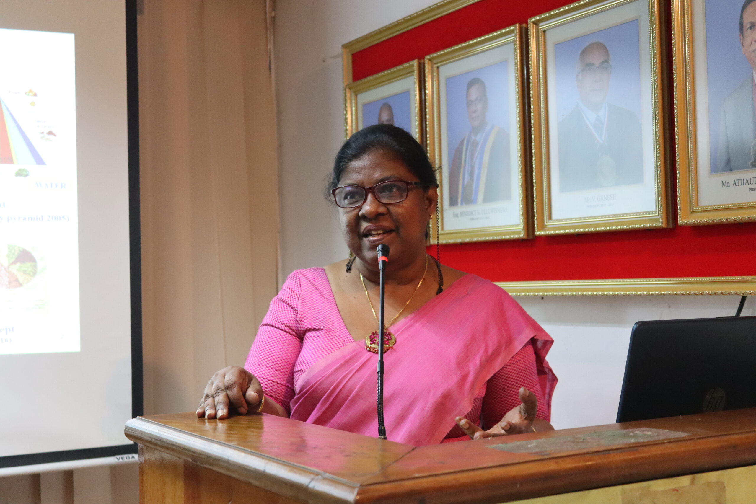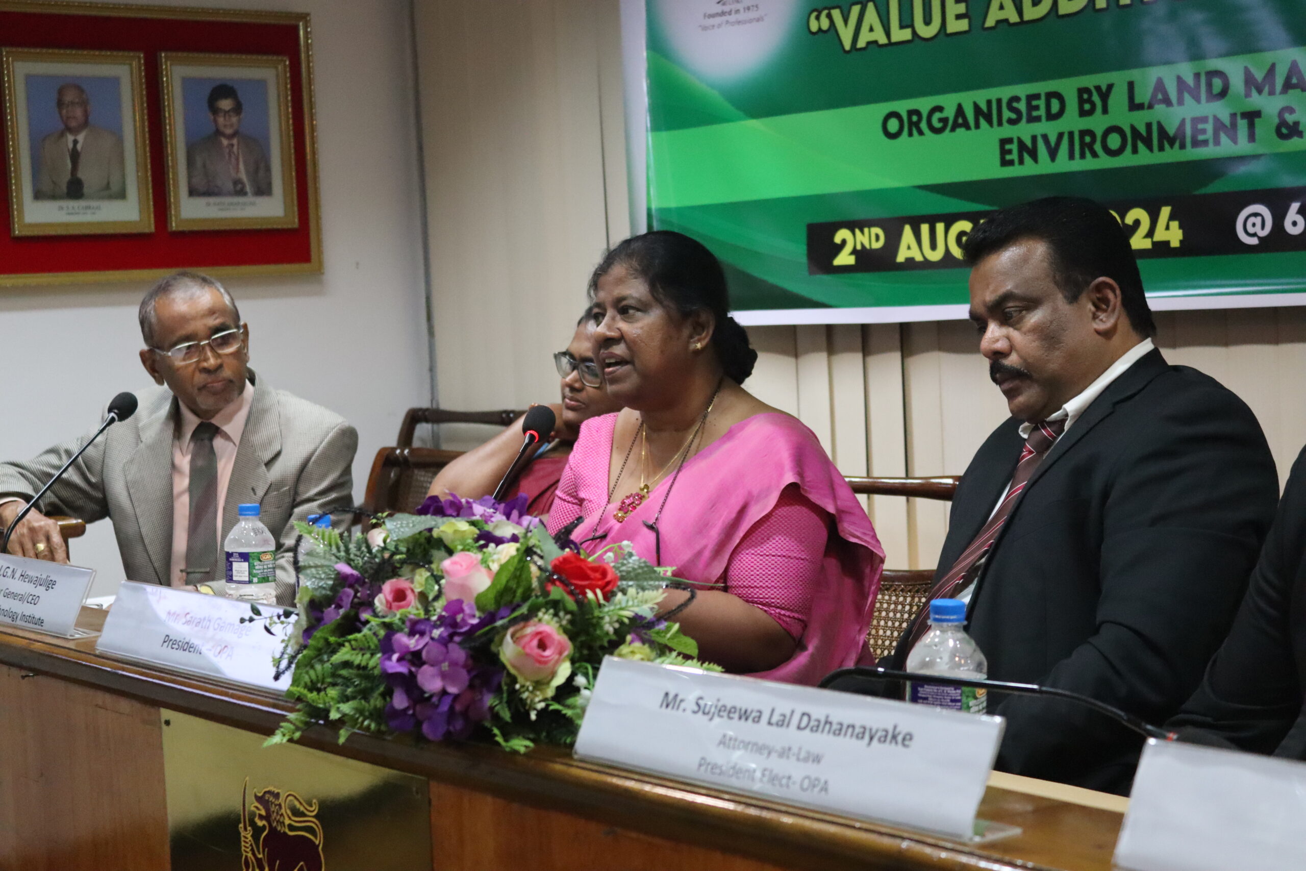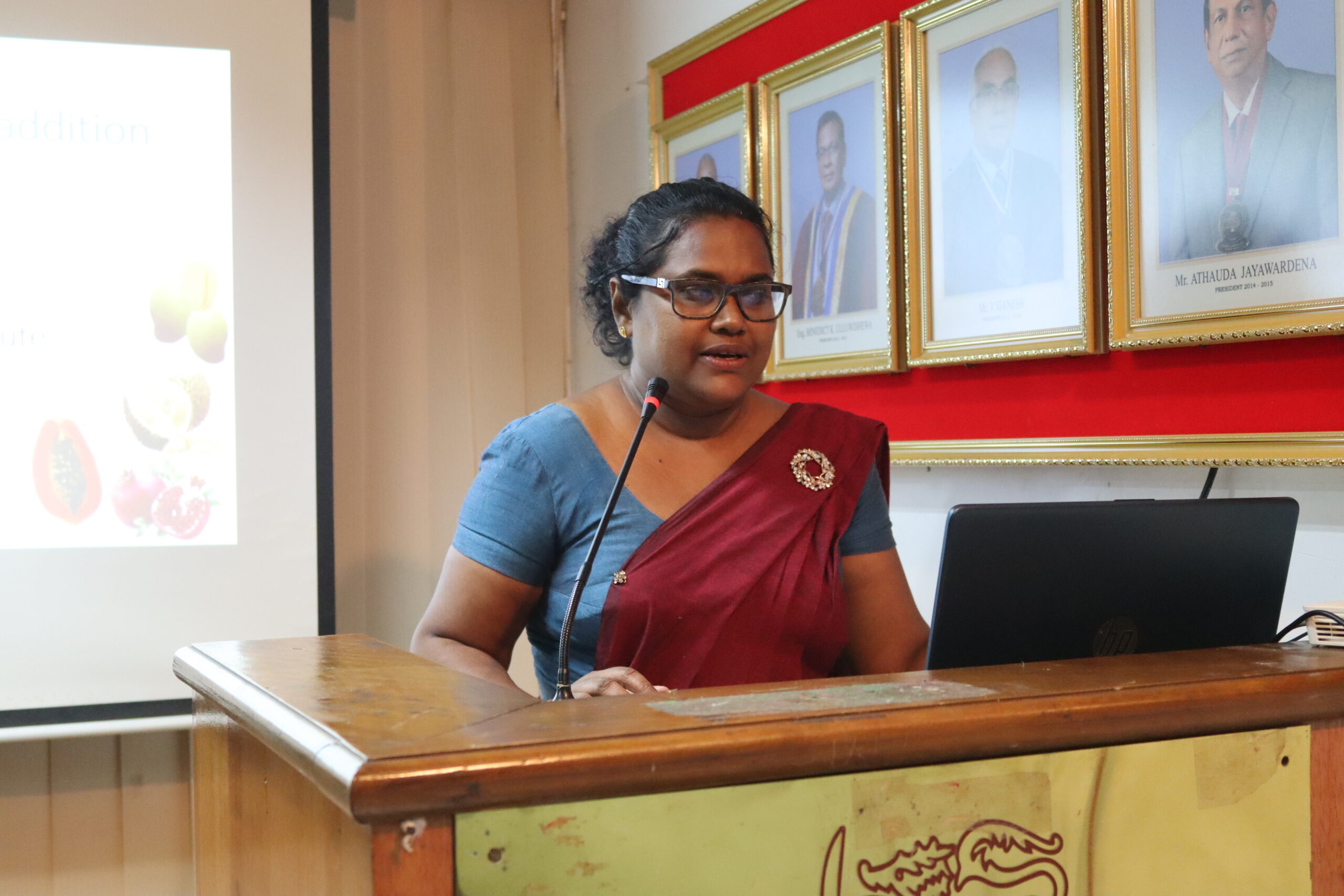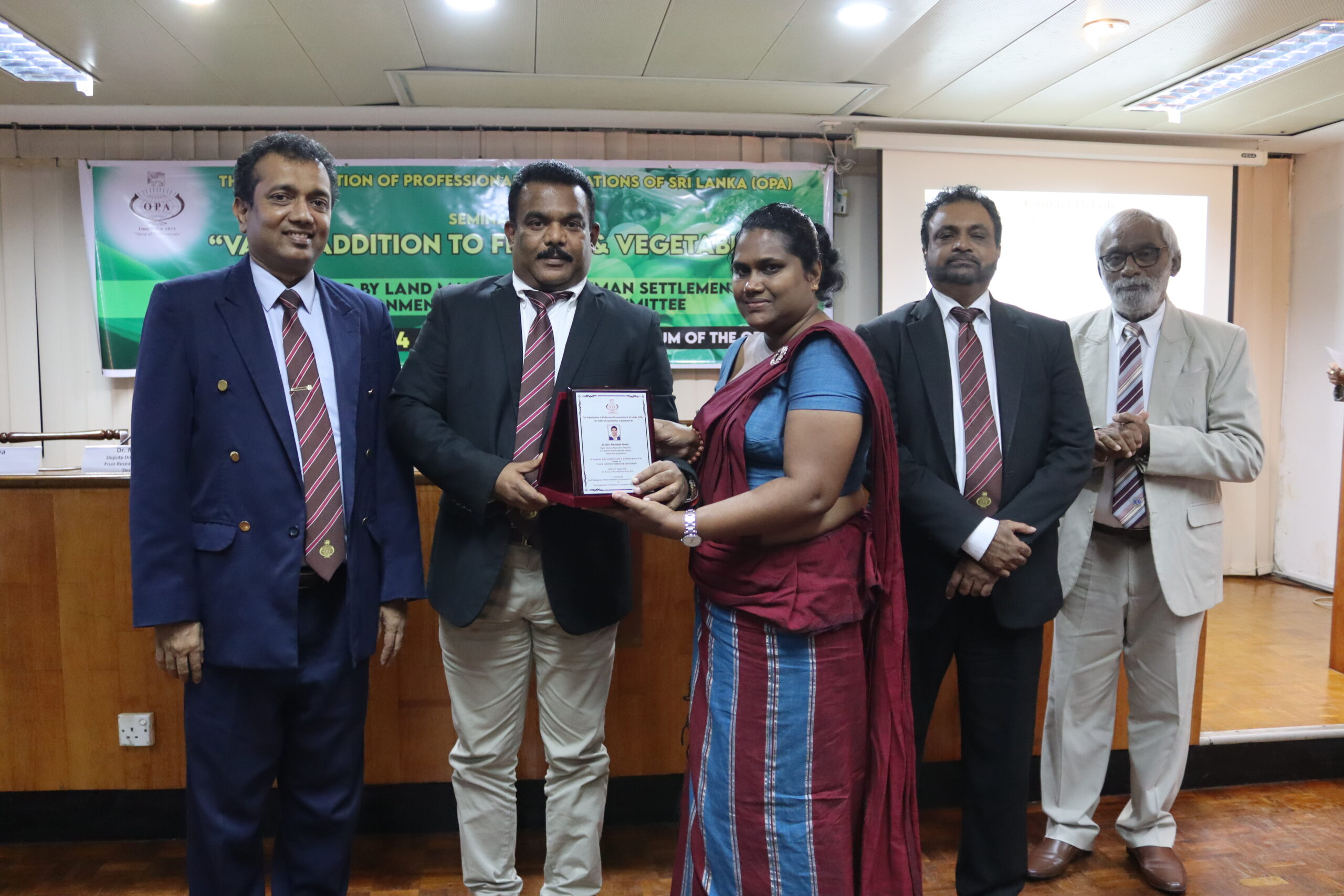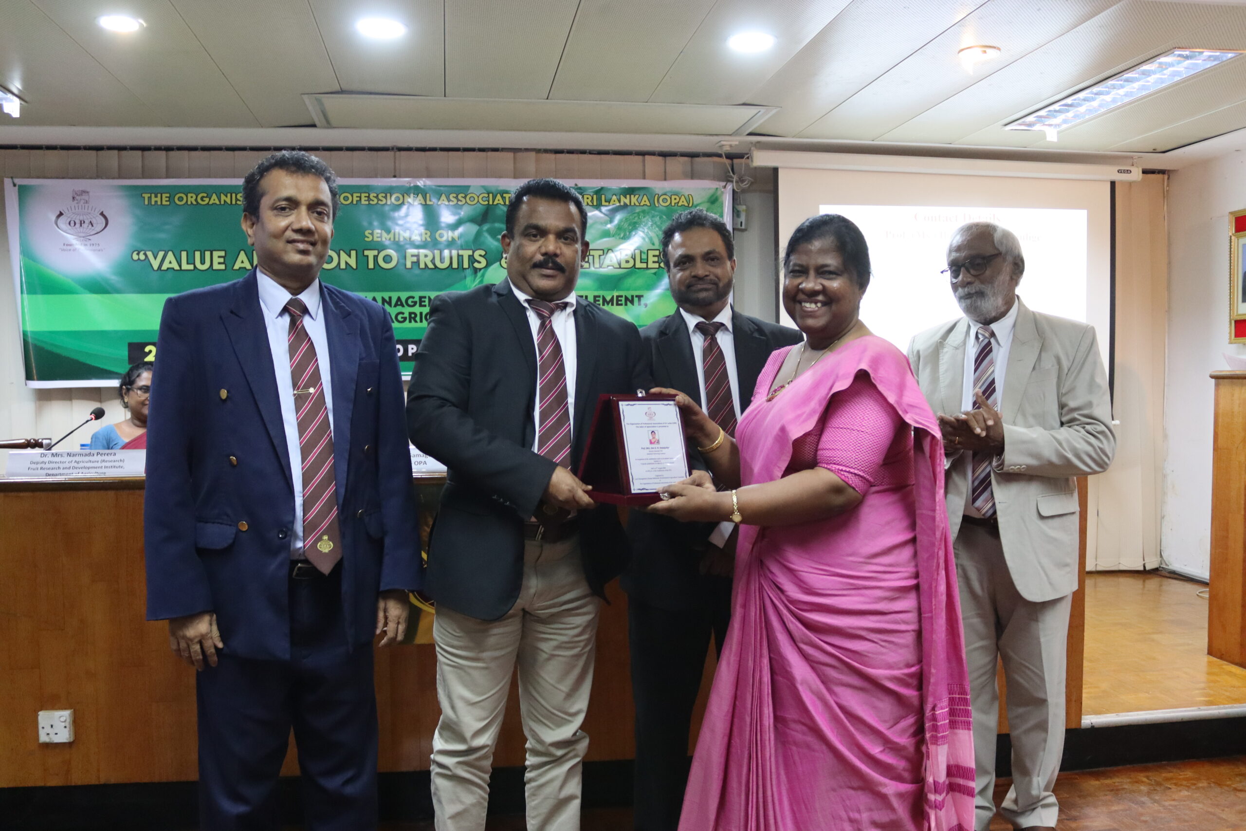 A seminar on “Value Addition to Fruits and Vegetables”, organized by the Land Management, Human Settlement, Environment and Agriculture Committee, was held at the OPA auditorium on the 2nd of August. The guest speakers were Prof. (Ms.) Ilmi Hewajulige, Director General and CEO, Industrial Technology Institue and Dr. (Mrs.) Narmada Perera, Deputy Director of Agriculture (Research), Fruit Research and Development Institute, Department of Agriculture. The event was moderated by Mr. Nelson de Silva, Former District Director, Ministry of Agriculture, and Senior Consultant, Open University of Sri Lanka.