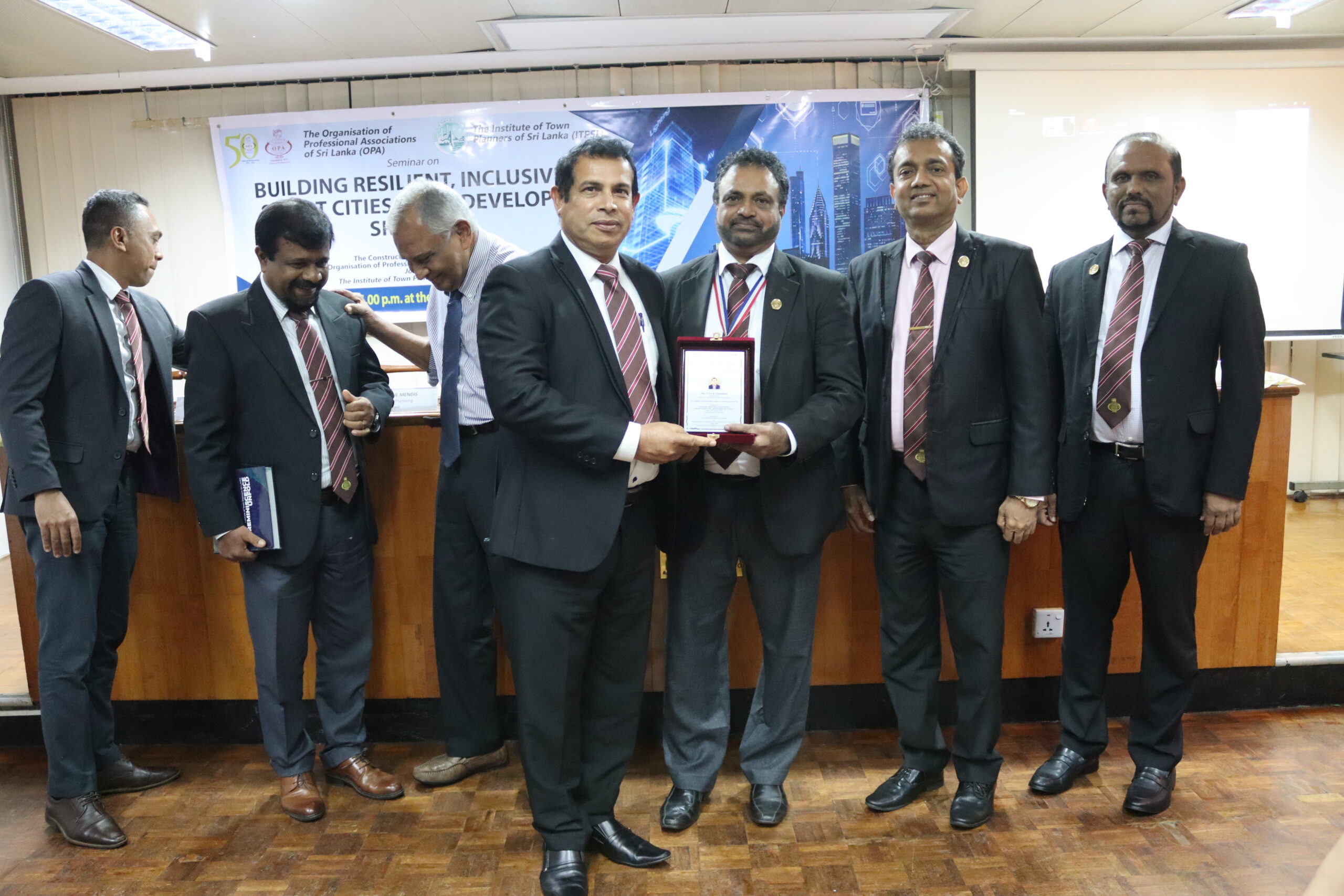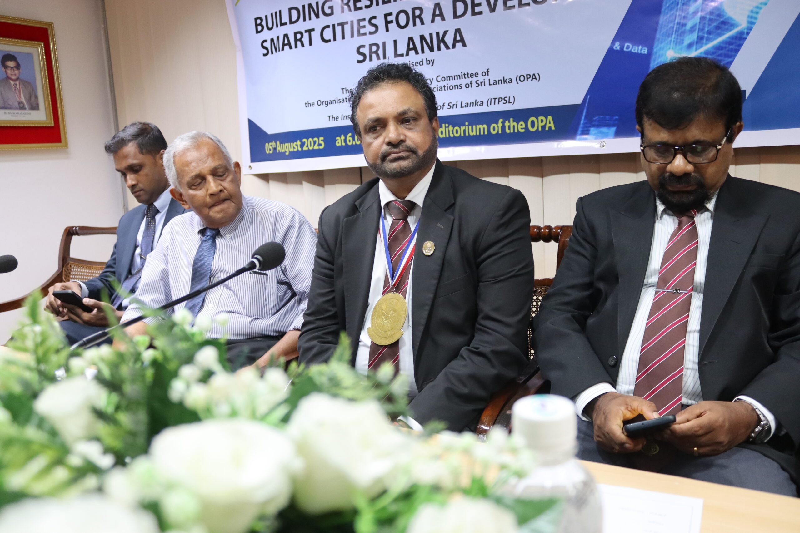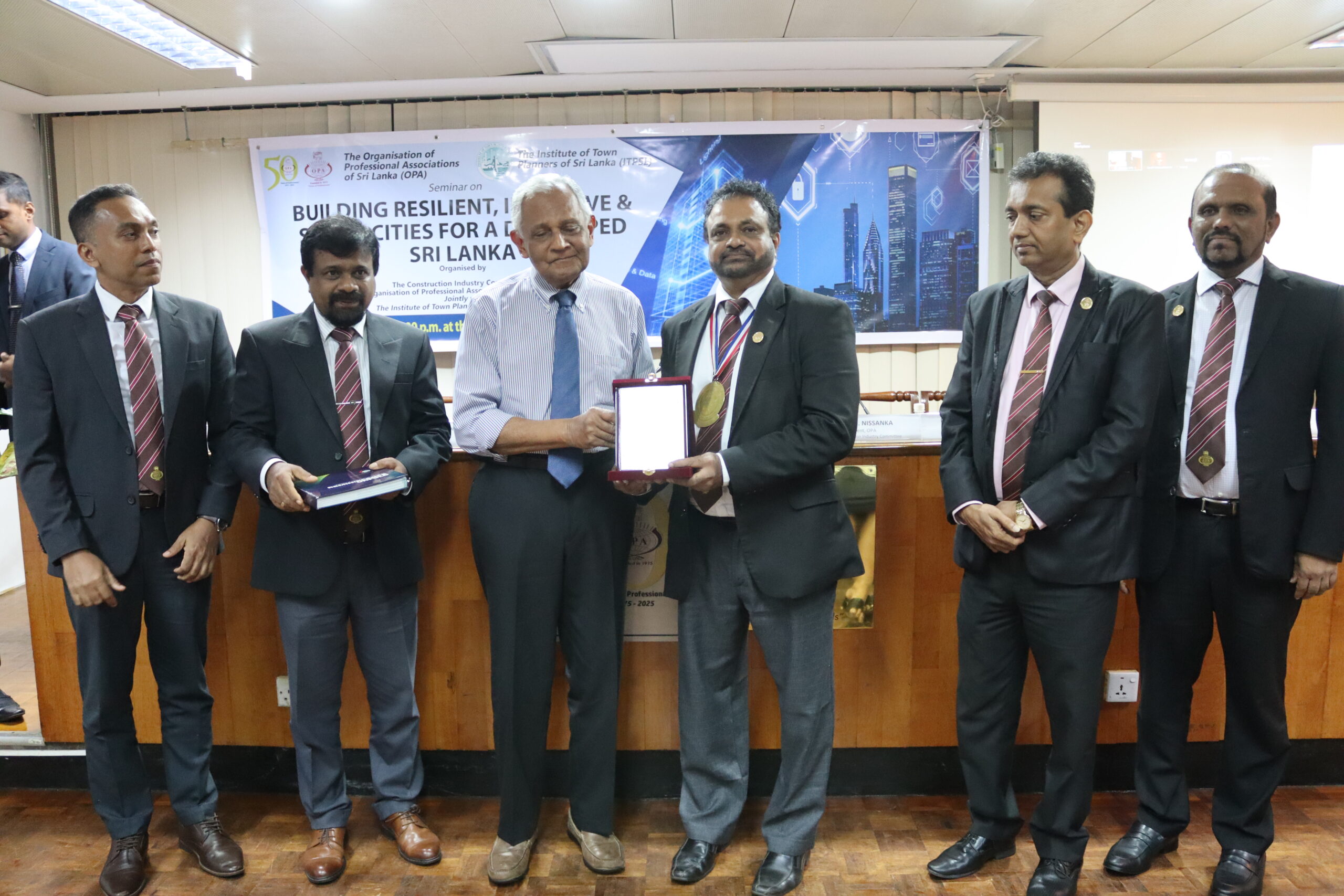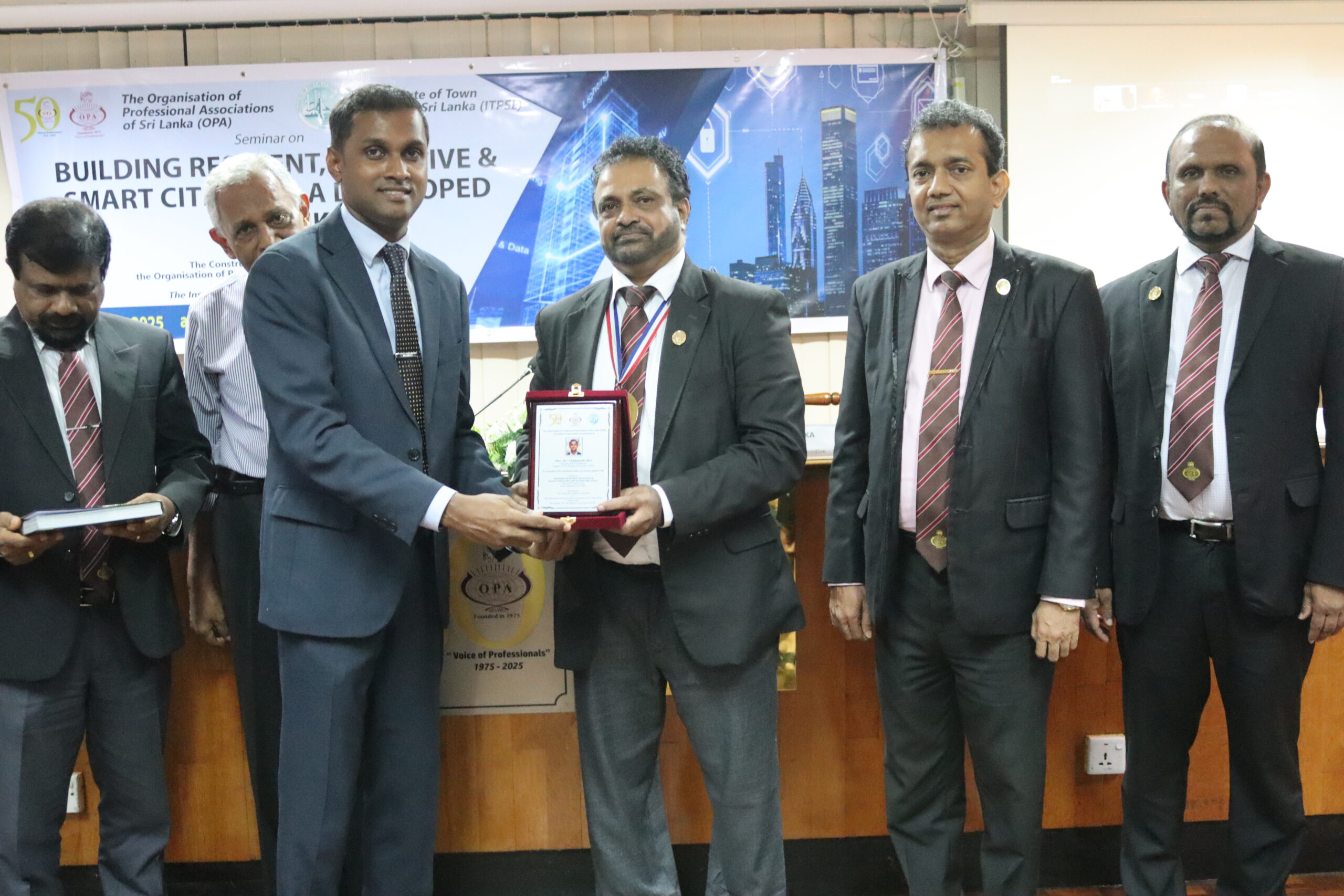A seminar on “Building Resilient, Inclusive and Smart Cities for a Developed Sri Lanka” jointly organized by the Construction Industry Committee of the OPA and The Institute of Town Planners of Sri Lanka, was held on the 5th of August, 2025 at the OPA. Emeritus Prof. Plnr. Willie Mendis, Faculty of Architecture of the University of Moratuwa, Plnr. Y.A.G.K. Gunathilake, President-Elect, ITPSL, and Plnr. (Dr.) Chathura de Silva, Chairman, Board of Education, ITPSL, were the eminent guest speakers who participated at this event. The moderator was Plnr. Chathurika Liyanage.
