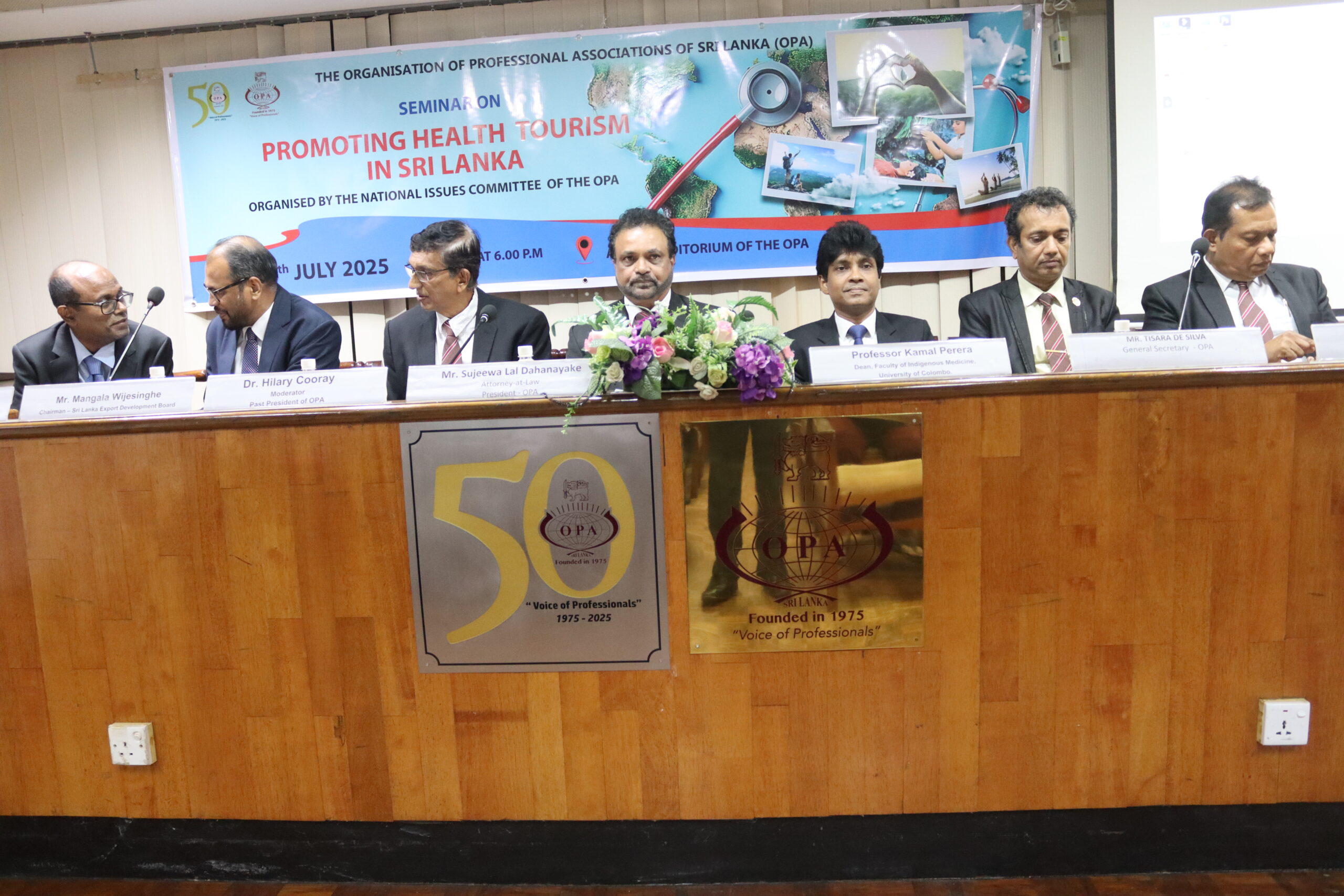 A seminar on “Promoting Health Tourism in Sri Lanka”, was held on the 17th of July at the OPA auditorium. The experts who addressed the audience at this event were Prof. Kamal Perera, Dean of the Faculty of Indigenous Medicine, University of Colombo, Prof. Ishan de Zoysa, Professor of Surgery at the Faculty of Medicine, University of Colombo, and Mr. Mangala Wijesinghe, Chairman/CEO, Export Development Board. The seminar was organized by the National Issues Committee while the moderator was OPA Past President Dr. Hilary Cooray.